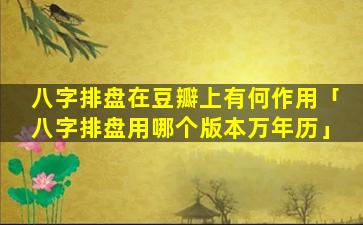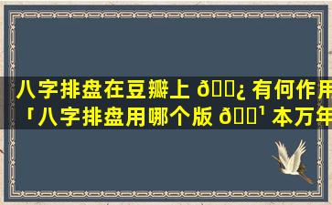 在豆瓣 🕷 上,八 🕷 字排盘的主要作用是: