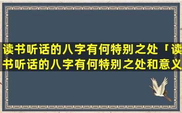 “读书听话”的八字没有特别的含义或 🐡 优势八字。是一种汉字命理学,用,于“预”测。一个人的命运和性格但读书听话并不 🦉 是八字中被考虑的因素