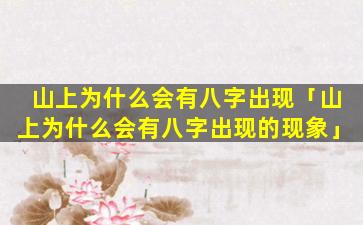 山上出现 🐞 八 🐛 字现象的原因主要是由于以下几个因素:
