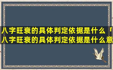 八 🦁 字旺衰的判 🌸 定依据 🐱