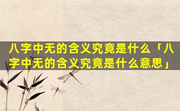 八字是指出生年月日时的干支组合,每个干支代表一个五行:金 🦁 、木、水、火、土。如,果八字 🌲 中缺少某个元素则称为“无”。