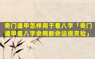 奇 🐛 门遁甲看 🐠 八字的 🐼 方法