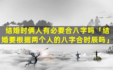 是否结婚时需要合八字取决于个人的信 💮 仰和文化背景。