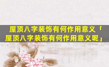 屋顶八字装饰 🕷 的作用和 🦅 意 🦈 义