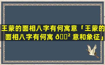 总体而言,王蒙的面相和八字均显示其具有较好的事业运、财运和智慧其。性,格,温,顺。稳重善于观察和 🐋 思考有领导才能人缘也 🦁 很好