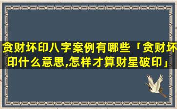 其 🐼 他常见的 🌷 贪财坏印八字 🌵 特征: