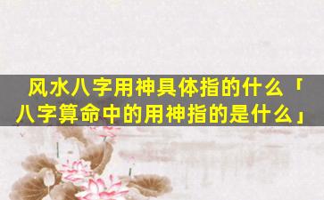 八字算命中,用,神,是指命局中对自身有利可以生扶日主制约或化泄 🐕 克制日主的五行。