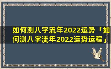 如何测八字流年2022运 🍁 势 🌷 运程