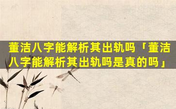 八字分析是一种传统的占卜方法,并未 🦍 得到科学证实。因,此。无法通过董洁的八字来判断她的出轨行为