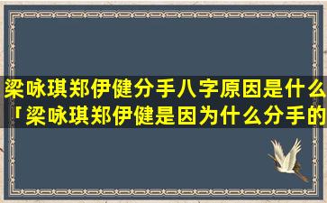 梁咏琪 🦉 和郑伊健分手的原因有以 🌷 下几个传闻: