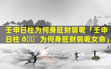 壬申日柱女 🐞 命身旺财 🐺 弱的原因如下 🐱 :