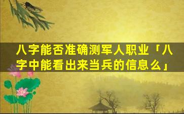 八字能否准确测军 🌸 人职业存在争议,尚未有明确的科学证据支持。