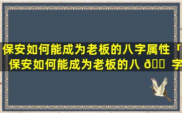 保安如何 ☘ 能成为老板的 🐦 八 🌻 字属性