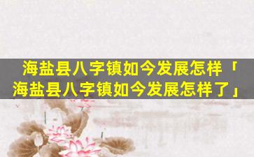 海盐县 🌼 八字镇 🦉 发展现状 🐝