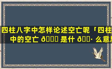 四柱空亡是指八字中天干地支 🌵 五行成不全 🐘 ,称为空亡“”。
