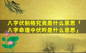 八字中再出现其他五行或天干 🐒 地支,通过合、会、化,等方式化解原局中的刑冲克关系称为“伏制”。