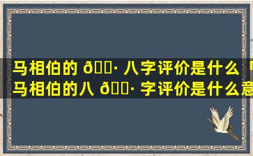 整体 🦅 来 🌸 看,马相伯的八字具有以下特点 🐝 :