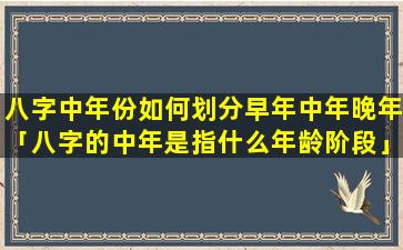 八字中年份 🌹 划分的 🌵 早年中年、晚年、一,般有以下两种方法: