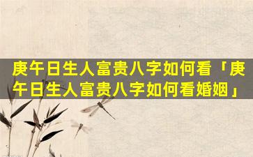 庚午日柱富贵的 🦈 八字特征