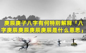 庚辰庚 🌸 子八字是一个特殊的八字 🐠 组合,具有以下特点: