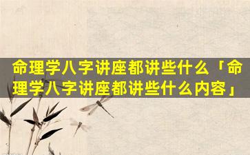 命理学八字讲 🐠 座通常 🌷 会涵盖以下主题: