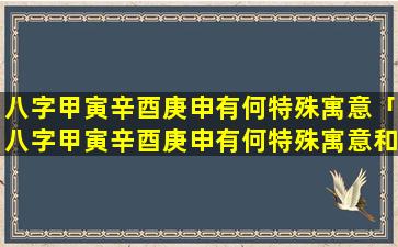 “甲寅辛酉庚申”这八个字的组合具有以 🐱 下 🐦 特殊寓意: