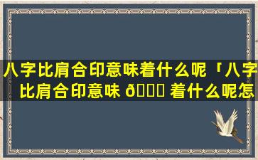 八字比肩合 🌷 印,是指日干的比肩与日支的印星相合的命理格局。