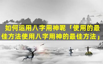 使用八字 💐 用 🐈 神的 🪴 最佳方法