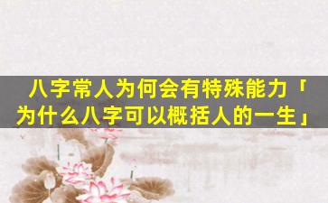 八字常人 🐟 拥有特殊能力 🌿 的说法缺乏科学依据,也没有可靠的研究或证据支持此观点。