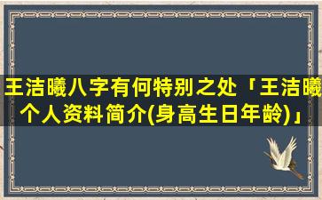 特别之处王洁曦八字的特 🐺 别之处在于: