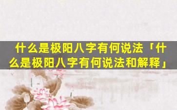 极阳八字是八字命理中一种罕 🌷 见的格局是,指一,个人的八字中包含八个阳干并且不包含任何阴干。