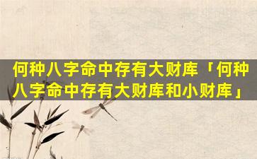 命局中的财库包括天财库、地财库 🕊 和水财 🕊 库,若命中,拥,有,全财库且财库闭合不泄主生财有道聚财能力强。