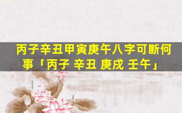 丙子辛 🐎 丑甲寅庚午八字,可断 🦉 以下事项: