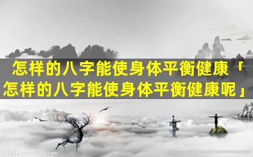 强健 🐕 身体的 🦄 八 🌿 字特征: