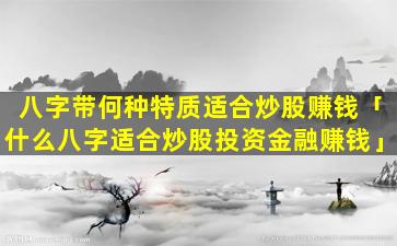 以下 🦟 八字特征的人更适合从事股 🌼 票投资、金融理财等工作: