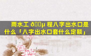 雨水工程中的“八字出水口”是指一种 🦈 用于屋顶雨水排放的出水口,其“形状像汉字八”。