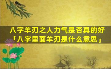 八字中羊刃代表 🐝 的不是力气好,而是,性,格 🪴 ,刚烈容易冲动办事果断有 🕷 魄力。