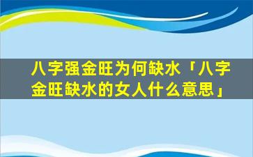 在八字 🌸 命理学中八字,“金旺”意,“味”着命主出生时的五行金气过旺缺水意味着水行五行不足。