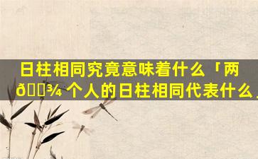 结论日柱相同意味着两个人的出生日期包含相同的天干和地支,可能会有一些相似的性格或经历。但 💐 ,由。于其他因素的影响两人的命运并不完全相同需要综合考虑八字命局、大运、流。年和环境 🐠 因素才能准 🌲 确判断一个人的命运