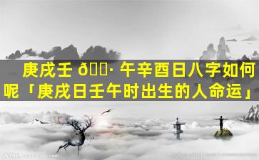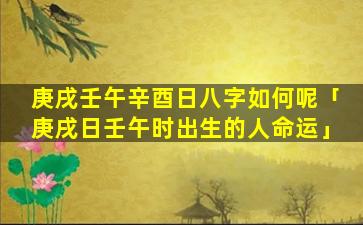 庚戌日壬午时 🕸 出生人的 🐞 命运