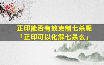 综合以上因素来看,正印能否有效克制七杀需要具体 🐈 分析命局和岁运的变化。一,般来,说,如,果正印。强旺而七杀较弱并且 🦢 正印为命局中的用神则正印可以有效克制七杀