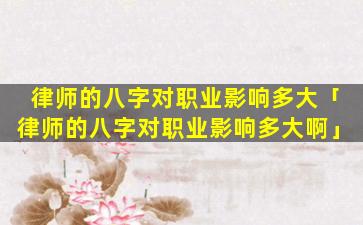 八字对律师职业的影 🐠 响程度是一个复杂 🐠 且有争议的问题对,此尚未达成共 🐎 识。