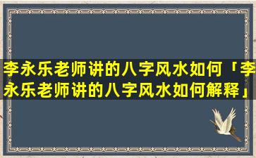 李永乐的 🌷 八字 🐴 风水理论与评价