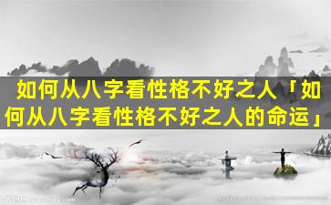 八字 🌷 中性格不好的 🌼 特 🐞 征