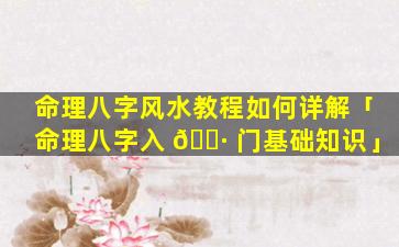 命理 🦄 八字 🦅 入 🐼 门教程学习指南