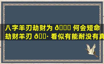 羊刃劫财 🍀 与 🐒 短命的关系 🌸