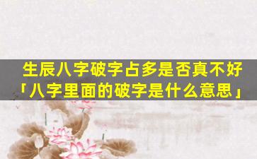 关于生辰八 🐬 字破字占多是否不好,有不同的说法和观点:
