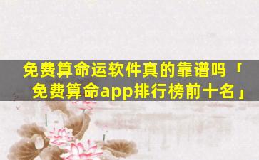 免费算命的软件通常不会十分 🐼 可靠,原因 🌳 如下: