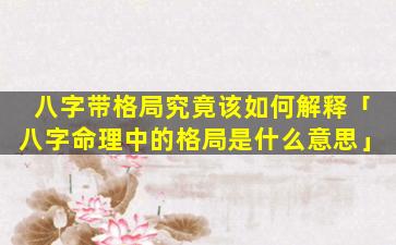 解 🕸 釋八字帶格局 🐦 時,需要結合以下幾個要素 🐠 :