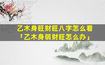 乙木身弱财旺的 🐕 命理特 🐈 征